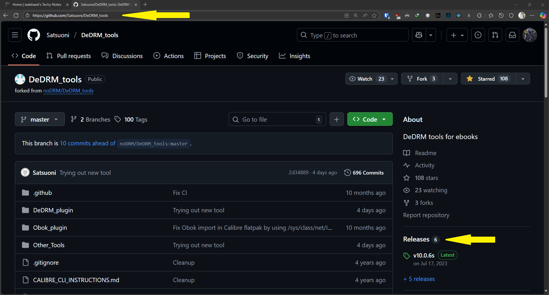 The first step is to download the latest DeDRM tools from the official GitHub repository. Navigate to the Satsuoni/DeDRM_tools repository.