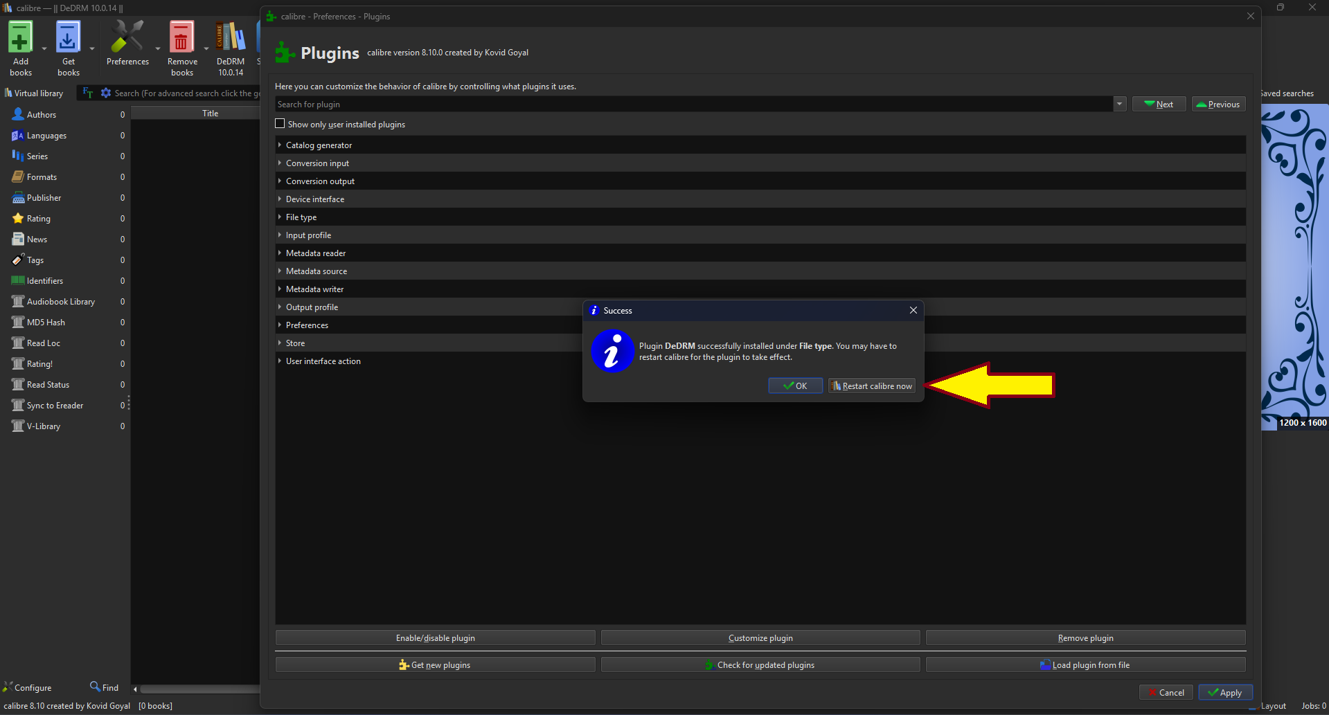 And on this Step click on "Restart Calibre now" once we restart the plugin will be installed and loaded in Calibre.